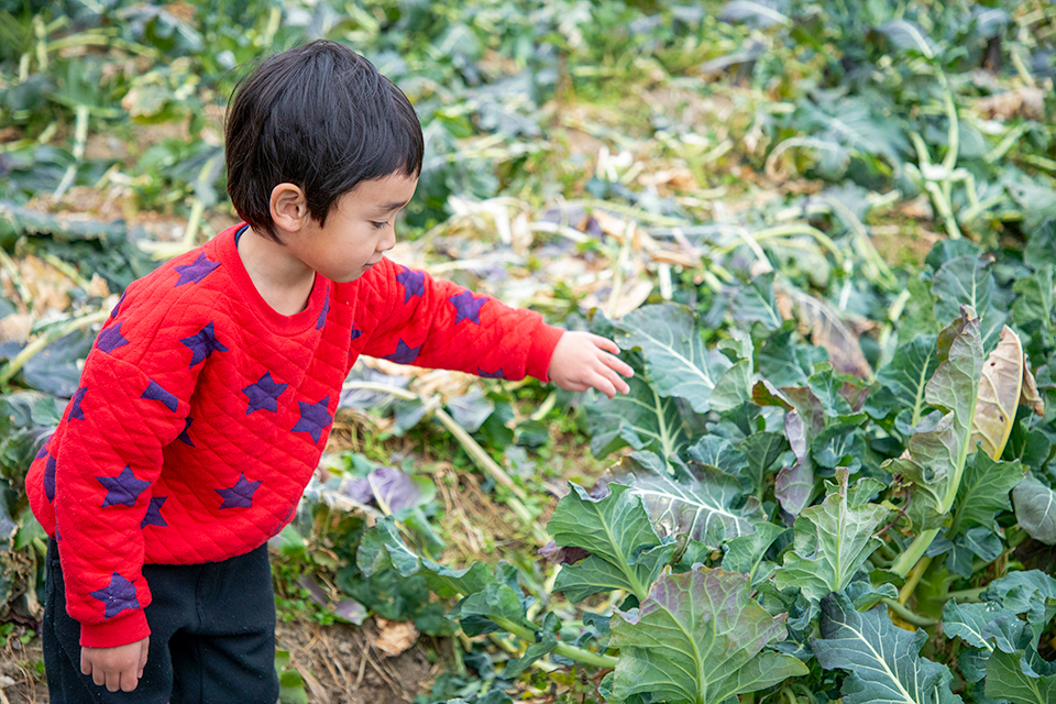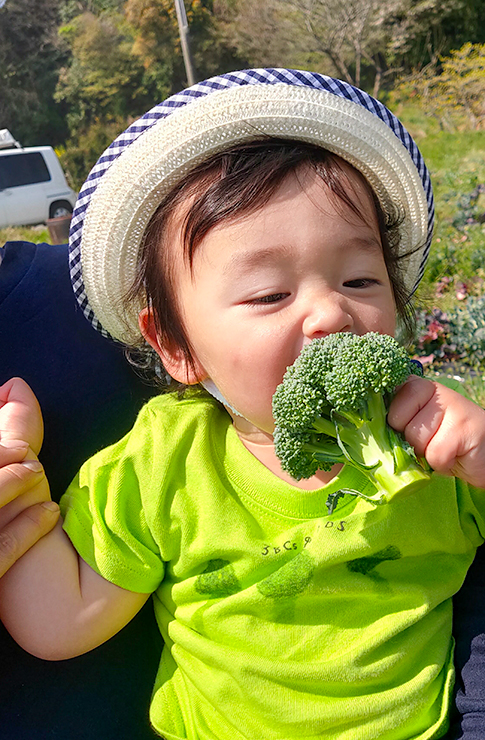 この日の取材には、はやとくん、ゆいとくんも参加。収穫のお手伝いや、トラクターに乗って運転手気分など、畑の野菜に負けじと伸び伸び成長中だ。「農業と子育ての両立は大変なことも多いけど、子どもに働く姿を見せられて良かった。よそのより、うちの野菜がおいしいって言ってくれた時はうれしかったですね」。食べた人が応援したくなる〝推し農家〟を目標に、野菜も子育ても、夫婦で力を合わせて奮闘中!
