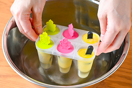 4.アイスがしっかり固まったら、型ごと20〜30秒水につけて、型から取り出す。
