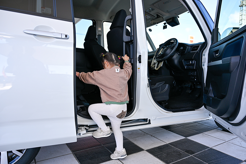 乗り込み口の高さは366mmと小さなお子様でも乗り降りが簡単。子ども用のアシストグリップもうれしい装備。