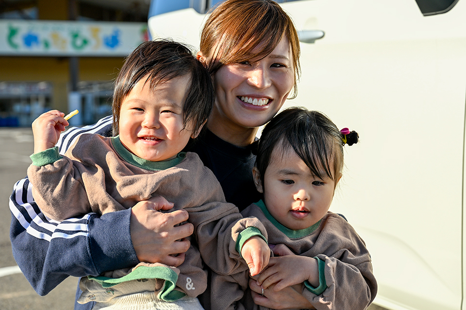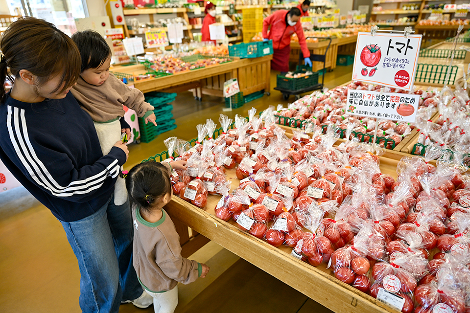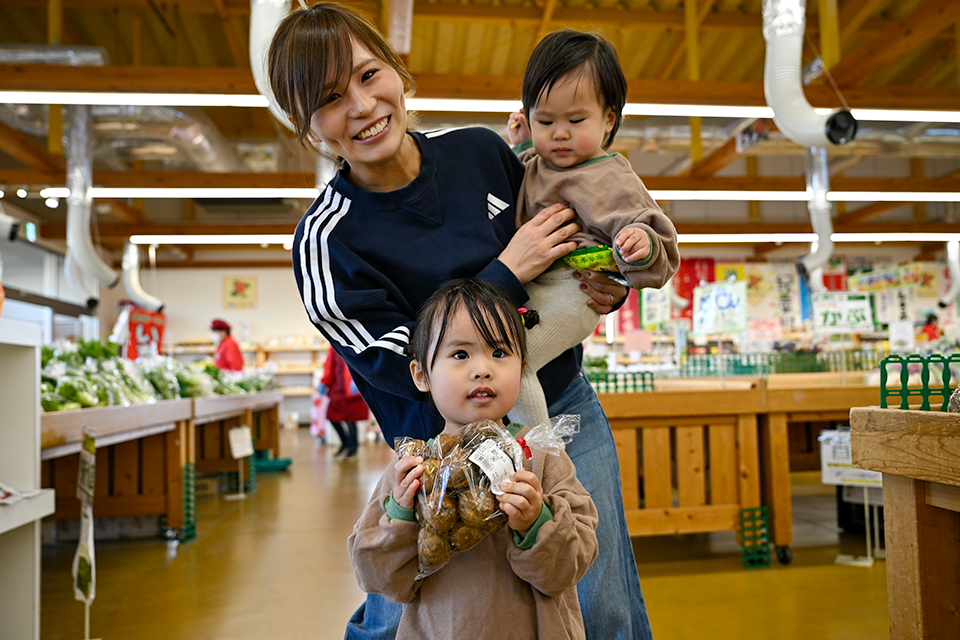 いちごが大好きな親子さんは、市川楓さんと、なゆちゃん(2)、とうまくん(1)。三人がやってきたのは、関市にあるファーマーズマーケットとれったひろば関店。